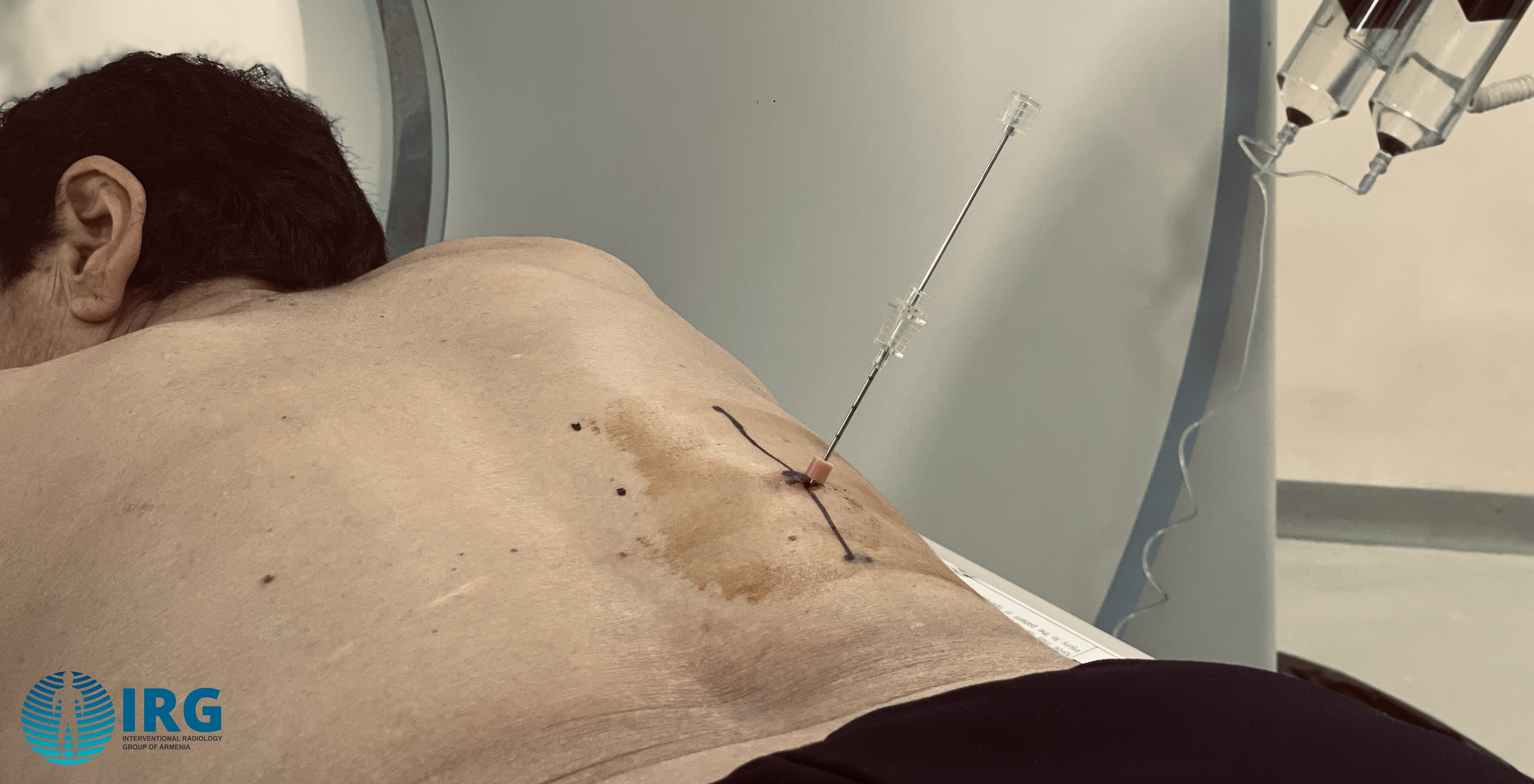 Բուժառուն զննվել է ուռուցքաբանի և ինտերվենցիոն ռադիոլոգի կողմից և նորագոյացության բնույթը պարզելու նպատակով որոշվել է կատարել նորագոյացության ասեղային տրեպան բիոպսիա՝ ՀՇ ուղղորդմամբ։