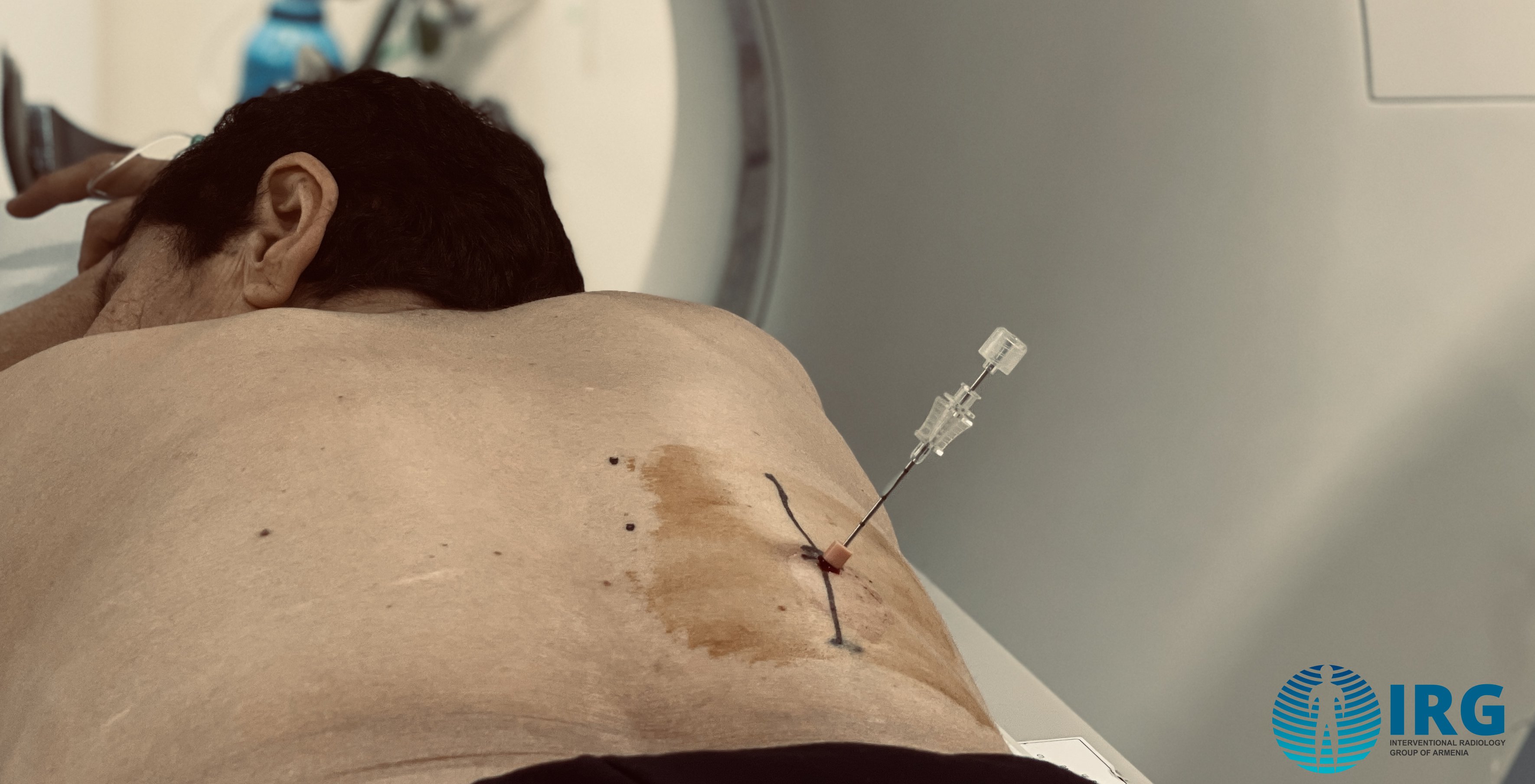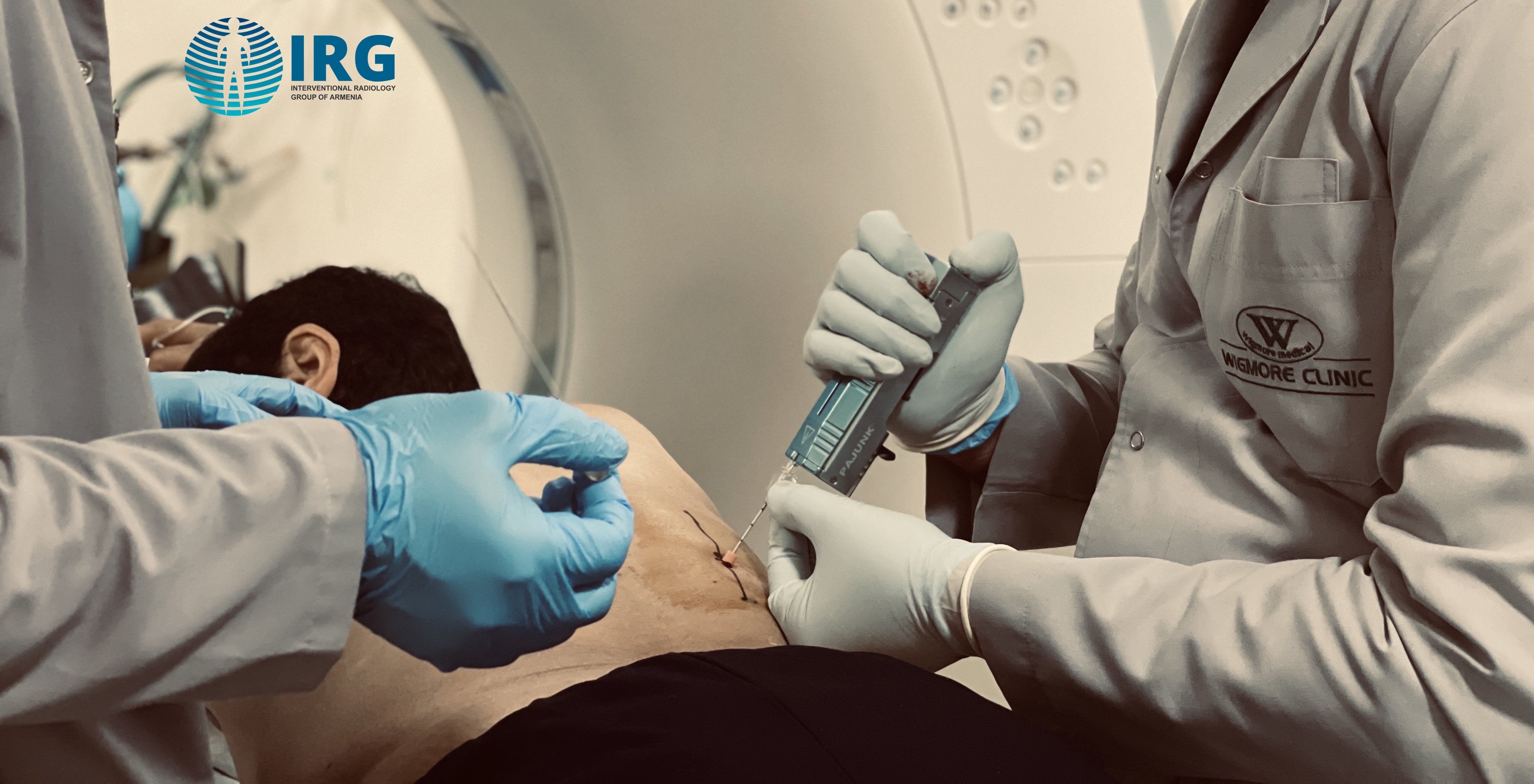 Բուժառուն զննվել է ուռուցքաբանի և ինտերվենցիոն ռադիոլոգի կողմից և նորագոյացության բնույթը պարզելու նպատակով որոշվել է կատարել նորագոյացության ասեղային տրեպան բիոպսիա՝ ՀՇ ուղղորդմամբ։